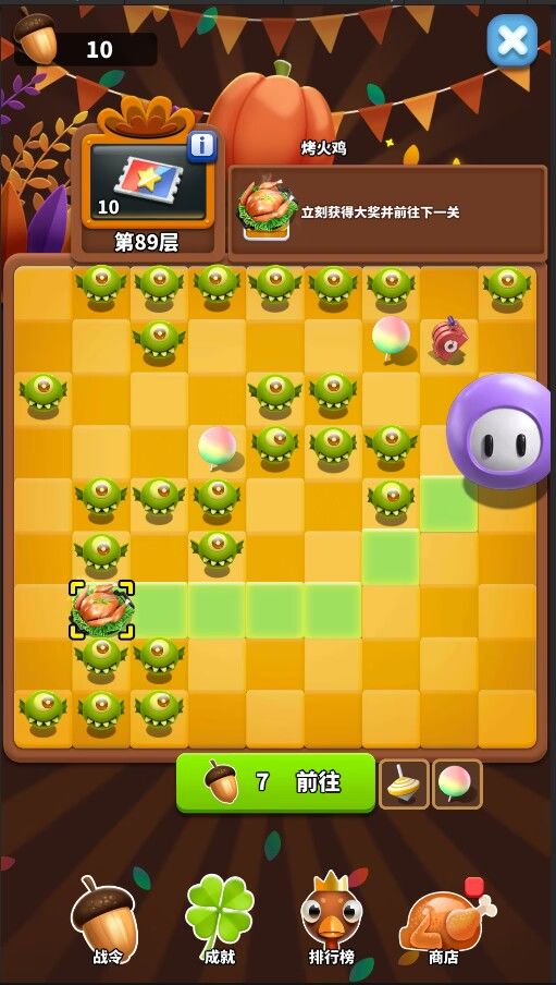 活动内容首先给大家看一下活动内容玩家点开始之后,就可以选取想要前往的路线,路线的格子数量则是消耗的坚果数量,每个小怪物都有奖励哦,到达火鸡后就能立马进入下一关啦同时可以获得本关的大奖~