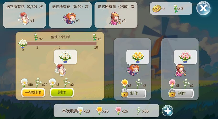 为三只鱼儿分别制作花花,争取换到更多的满天星种子~