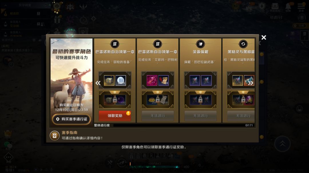 赛季通行证是赛季角色专属的连续型任务,冒险家可以依照主要任务或各地区战斗力的进度顺序去规划各式各样的任务。跟着赛季通行证完成任务,在赛季毕业前,就大约能完成到瓦伦西亚南部主线任务,因此新手冒险家只需要跟着赛季通行证展开冒险就可以了。