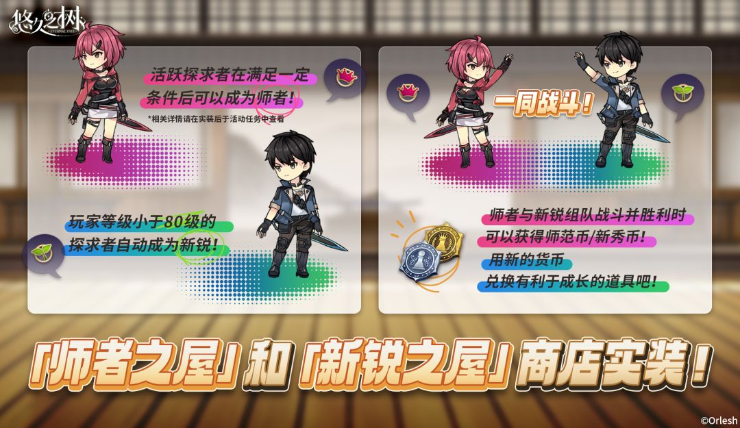 鼓励探求者帮助新人的新机制即将上线!二周年版本更新后,玩家等级80级以下的探求者将成为新锐,而符合条件、且完成了特定任务的探求者将成为师者。双方在同一个房间内进行战斗且胜利后,将获得对应身份的货币,可以在新商店-「师者之屋」和「新锐之屋」兑换有助于战力培养的道具。无论是老练探求者还是新人探求者,都可以在组队中受益!请探求者大人们踊跃参与其中,一同获得丰厚的奖励吧!