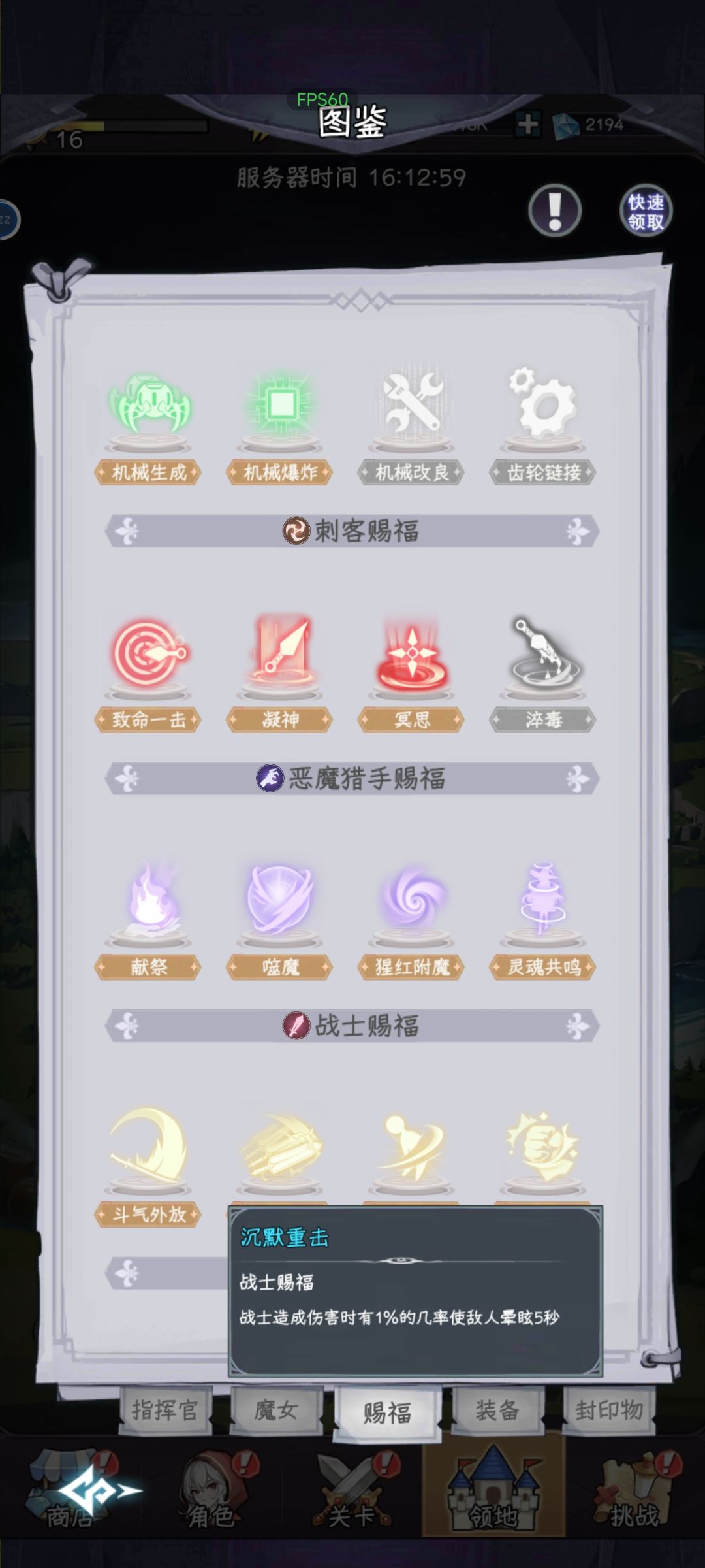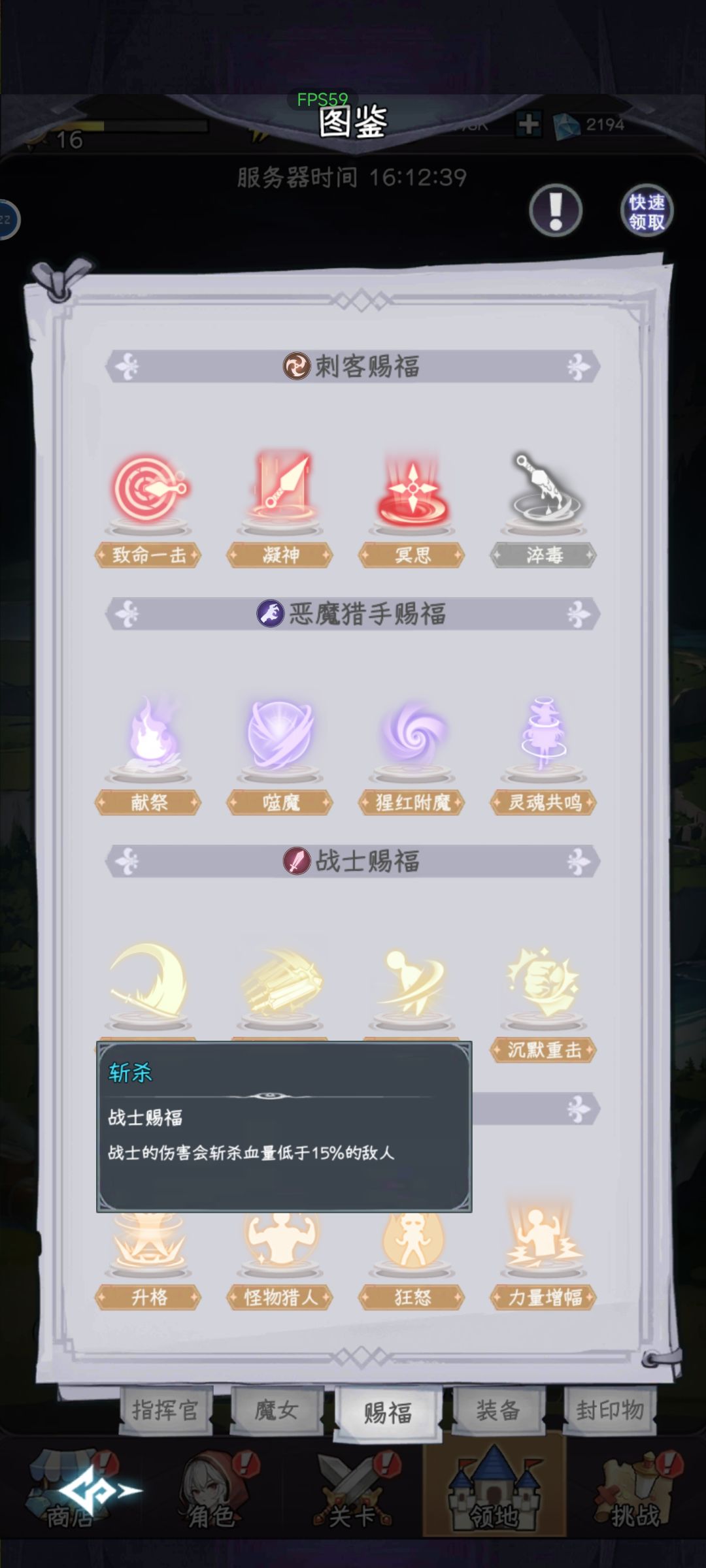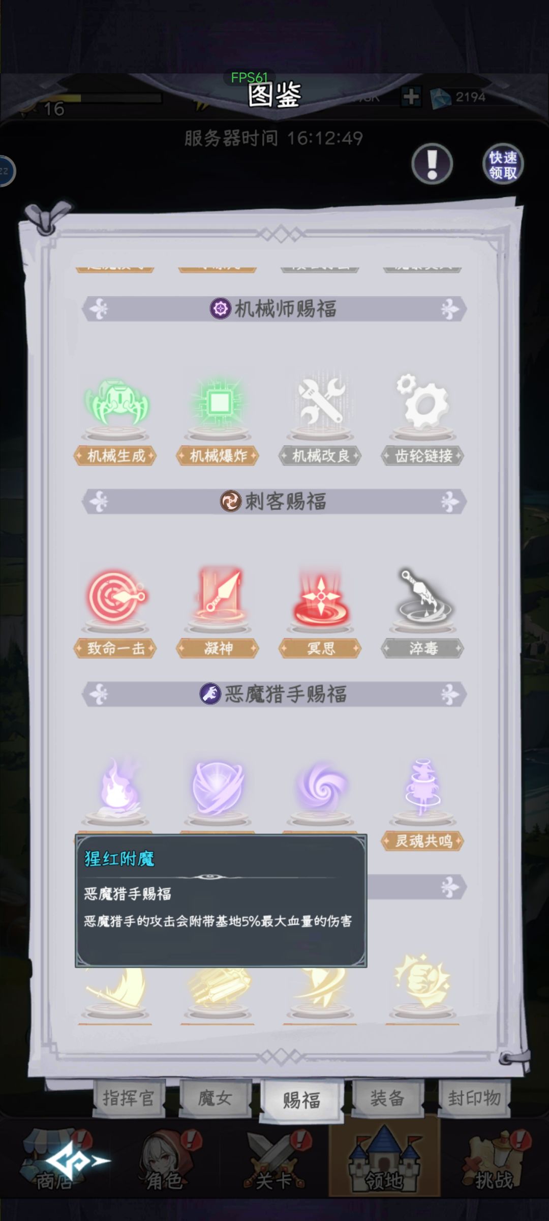 目前来说比较强力的魔女是:ur恶魔,S刺客,S战士,(UR法师因为我没有,但看论坛里说挺好用的,我不敢过多评价,有抽到别的自己觉得强力的魔女评论里再说下),目前版本唯一抽出来就有控制的魔女是S法师,在你阵容输出差一点的情况下这点减速挺关键的。在配队里有个重中之重的问题就是赐福问题,赐福需要某个职业达到一定击杀数才能解锁,在前期一定要找你需要的赐福然后在推图的时候多用那个职业杀敌,不然后期你想刷的时候可能连小怪都打不动,我目前觉得很好用的赐福是恶魔的灵魂共鸣、猩红附魔,战士的斩杀和沉默重击,法师的冰冻咒,刺客的淬毒看着好像挺好用的但是我没有S刺客我没法评价。