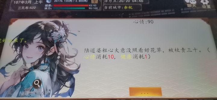 太惨了,照看花草,这个事件选左照看需要1000手工才可以完成。另一个选项需要潜行大于500。。。