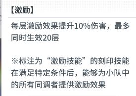 激励是一个通用的伤害提升buff,假设你的面板伤害是100,那么一层激励之后你打出去就是100X(1+10%)=110的伤害,激励上限20层,即能获得200%的伤害提升