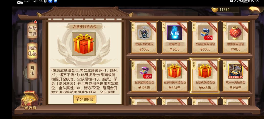 左慈自身面板不高,就算追击法术无视敌军属性,常规配装仍然表现不佳,这里推荐将来把一套血书当两套用: