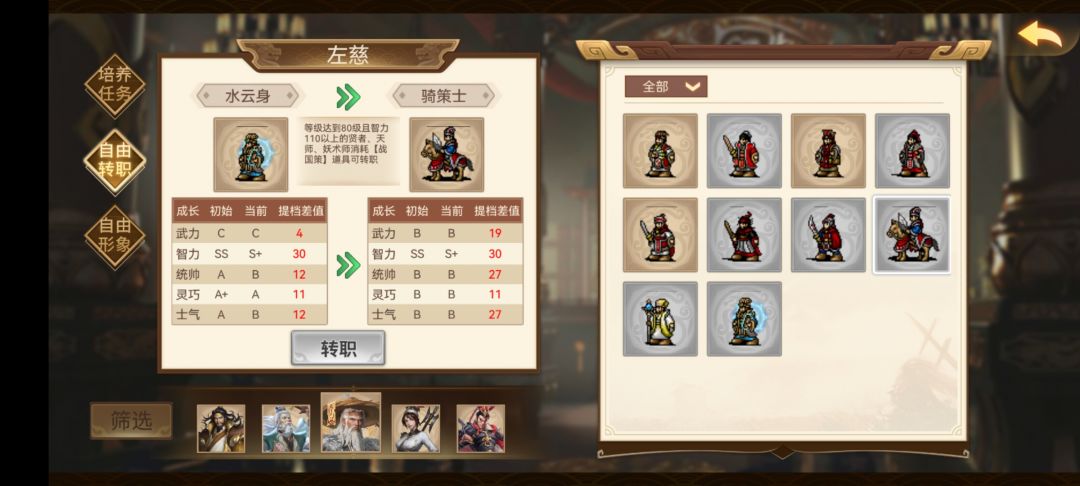 由于左慈自身的特殊机制(下一节展开),建议在1.儒将(肉盾)。2.骑策(高氪输出)。3.水云身(高氪输出/平民辅助)中选择一个方向,后文详细讨论。