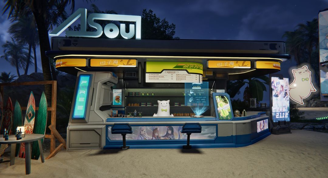 另外,在场景内有一个阿草餐吧,各位来观看的幸存者们如果玩累了,可以来此处免费领取A-SOUL联动美食,补充能量接着high!