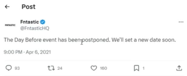 而玩家们掰着指头数日子,好不容易到了距离新预告发布的前一天,Fntastic突然无理由地跳票了,新的预告发布日期会是一周后的4月6号。