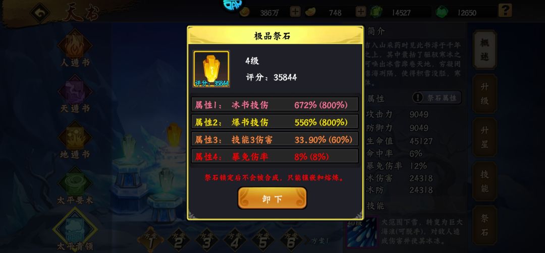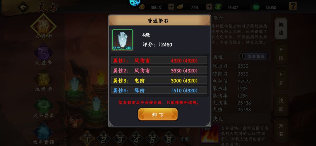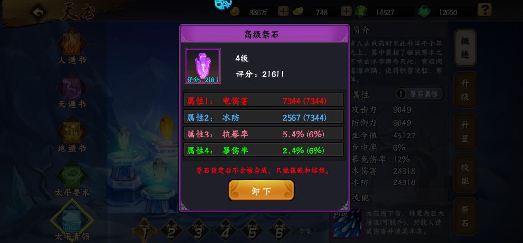 天书升星需要碎片大全,以及石头佩戴要求。