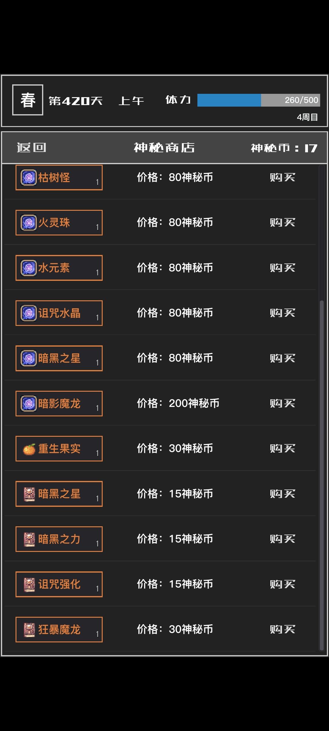 6、神秘商店。在主面板的其他里,有个神秘商店。看广告可以得橙宠,附魔,还有重生果实,如果选错主角的可以用,不过我没试过。可以每天打卡,拿个终极龙橙宠爽爽。