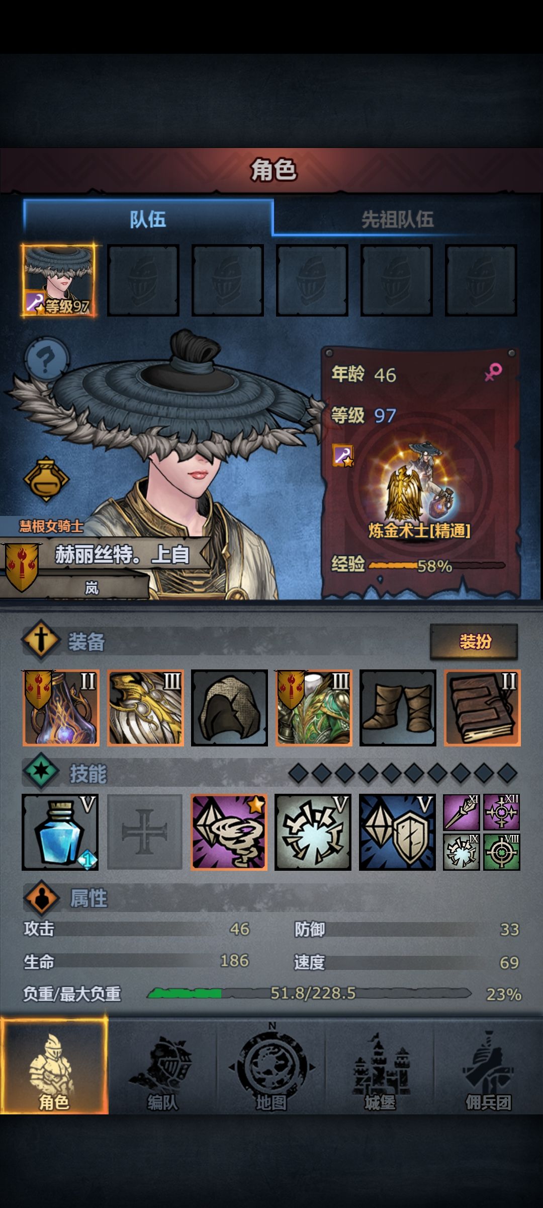 技能,炼金的技能限定瓶子,而且需要物理法术双命中,所以搭配1槽选择炼金自带的效率法则。