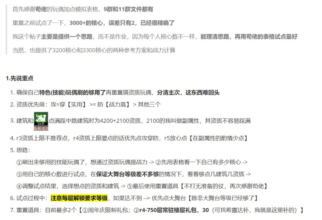 前言:先前排感谢苟佬做的《邂逅玩偶加点模拟表格》,9群和11群文件都有,目前精度已经很高,足够用了