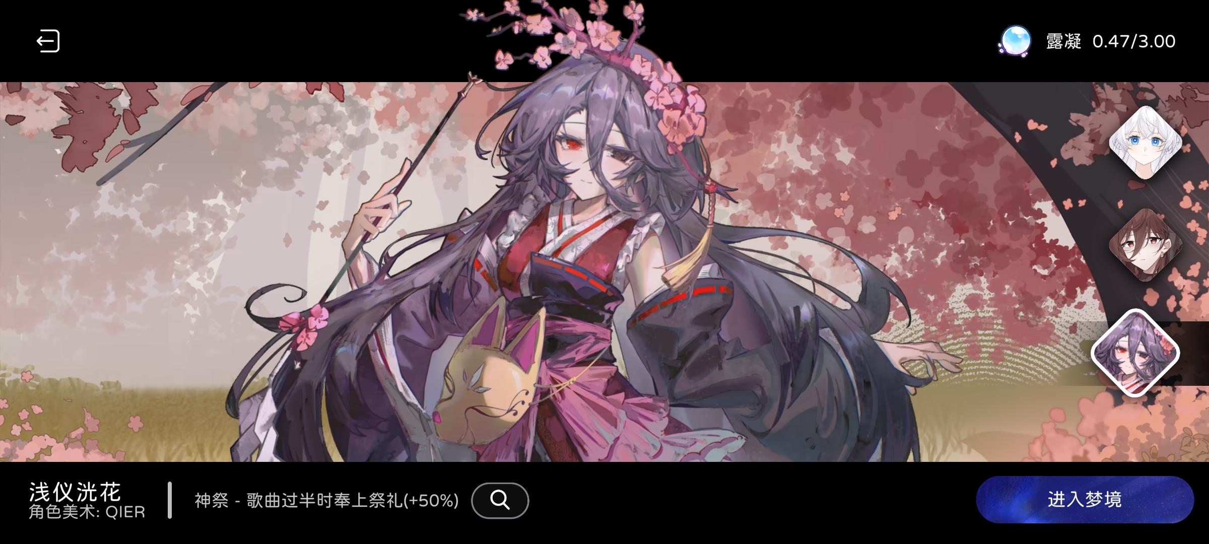 在梦之涟漪系统中选用绮梦,游戏将转为困难模式,此时多数梦境效果不可用,且在游玩前会进入角色选择页面。