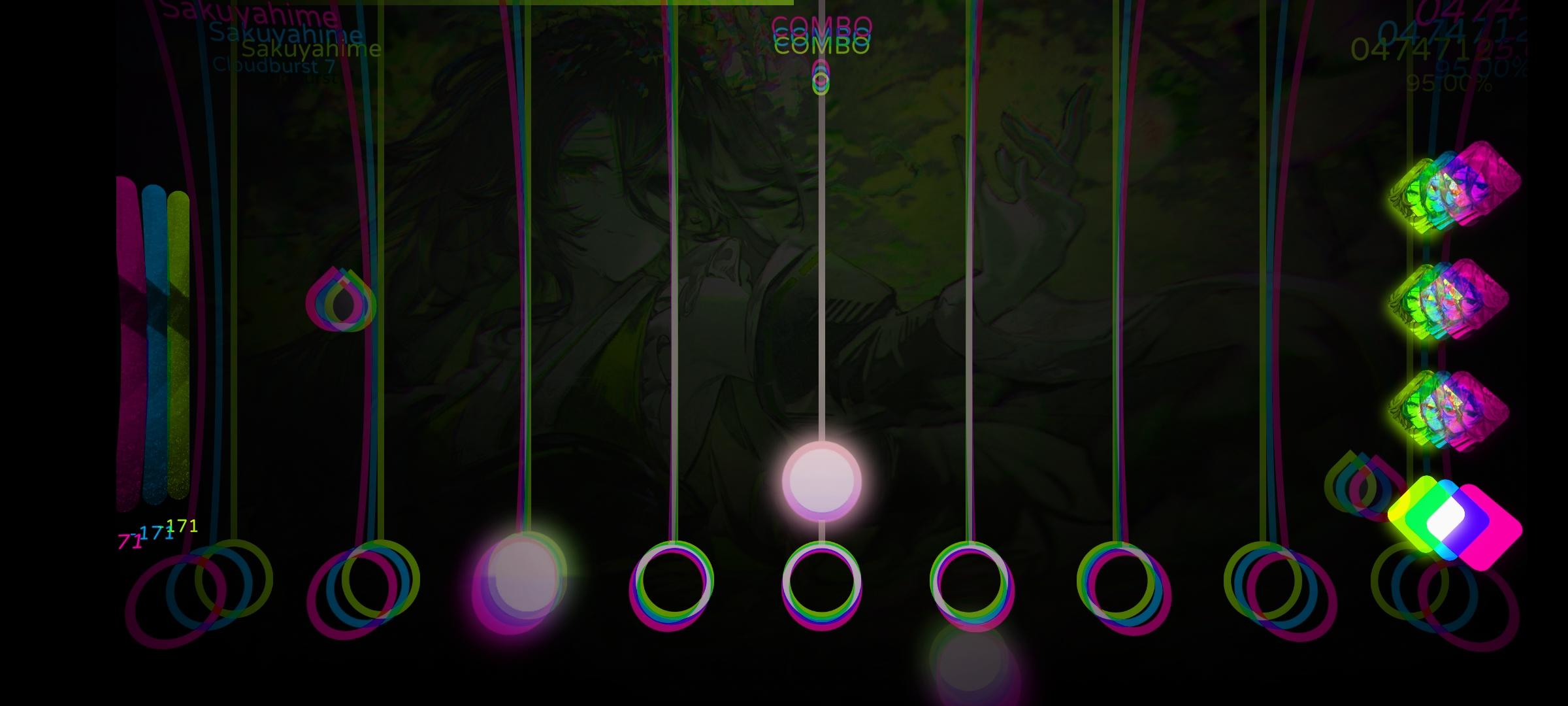 勾选启用多押高亮提示后,多押note的周围会附带一圈光晕以和其他note进行区分。