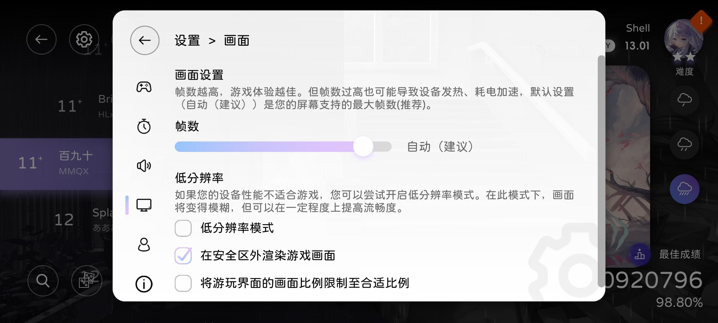 将游玩的画面比例限制至合适比例,这项设置和上面的‘安全区外渲染游戏画面’共同影响游戏画面的大小,两项设置四种不同的组合方式,对画面的影响也不同。玩家可以自己尝试,选择适合自己的比例。