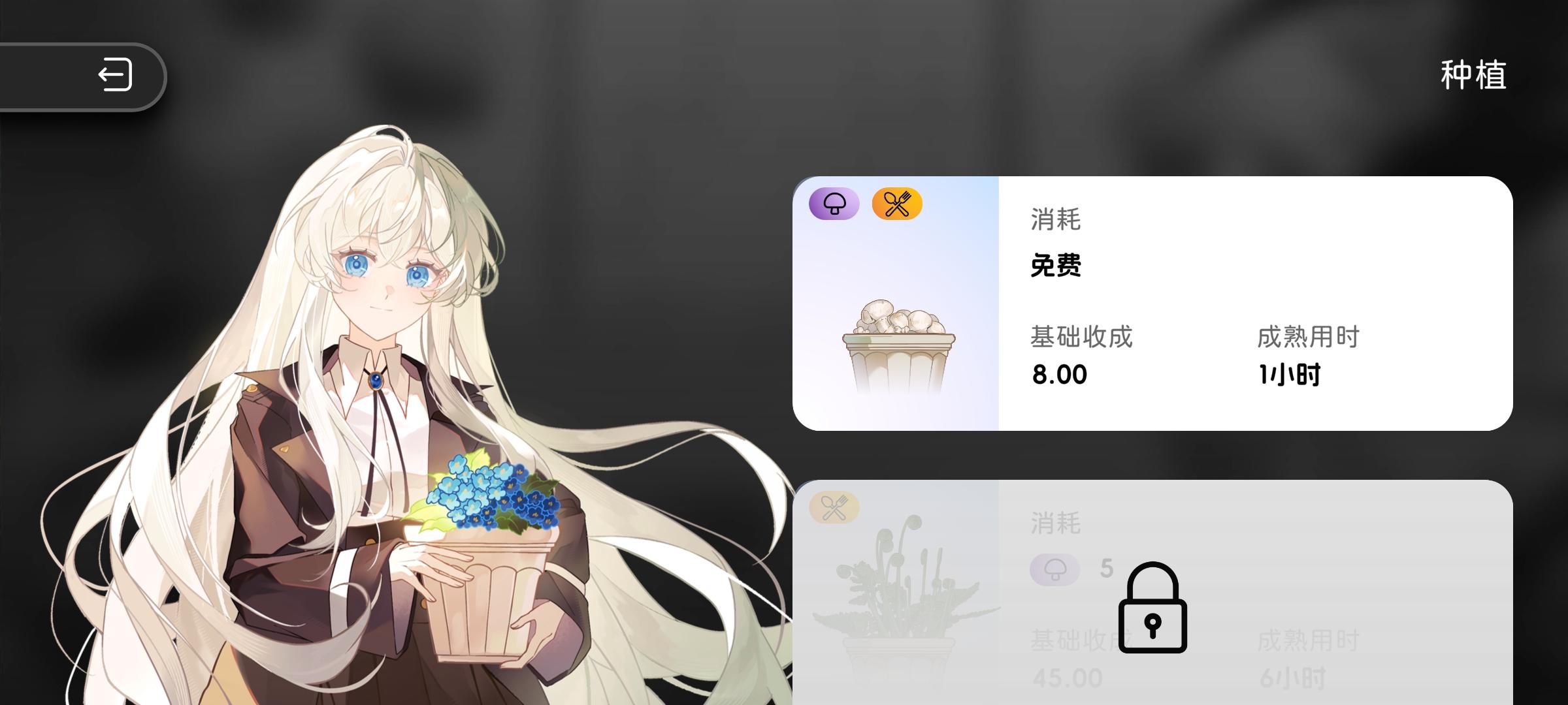 玩家可以种植并收获作物,利用作物点数进行升级,升级后会获得奖励。
