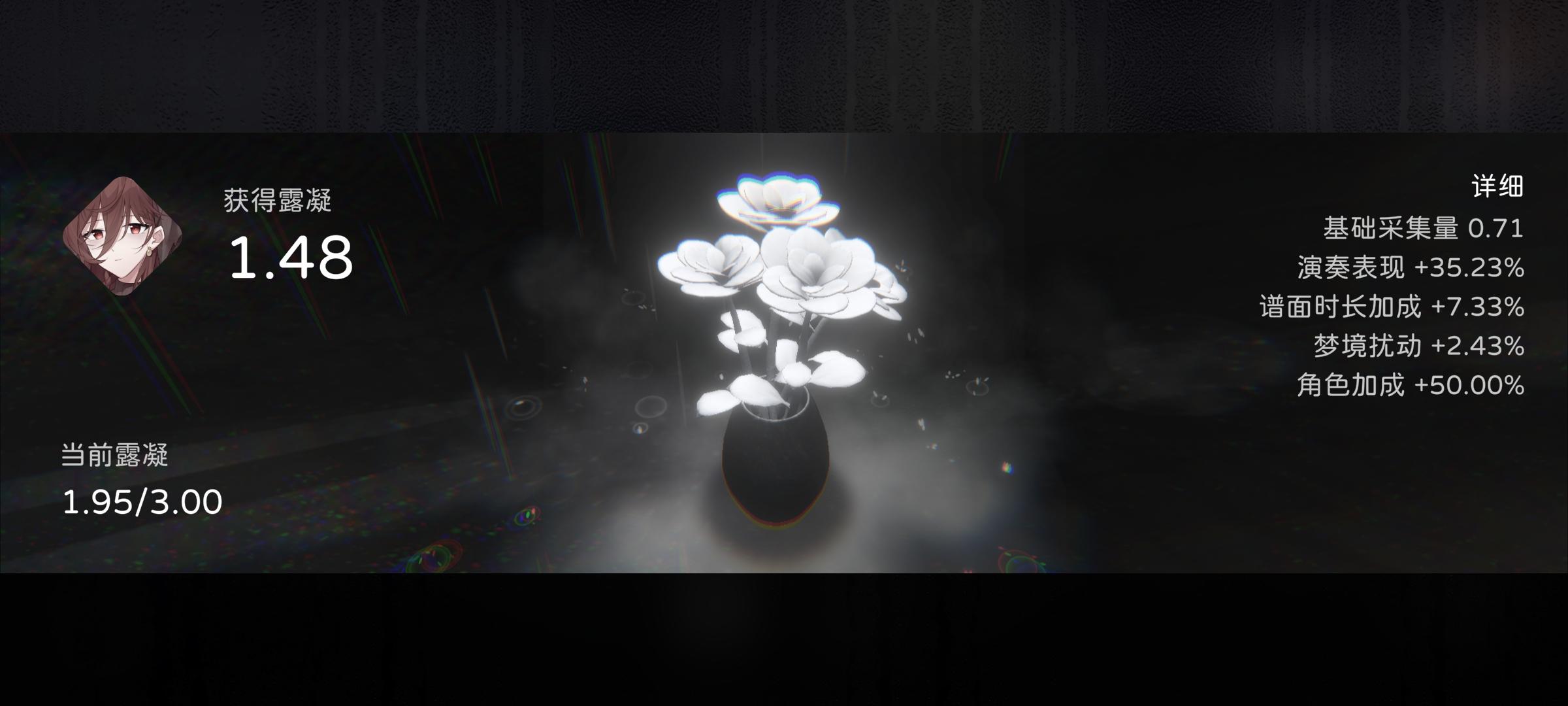 游玩结束后,会根据梦境纯净度和角色等加成确认露凝获取量。别忘了多用露凝给植物浇水。