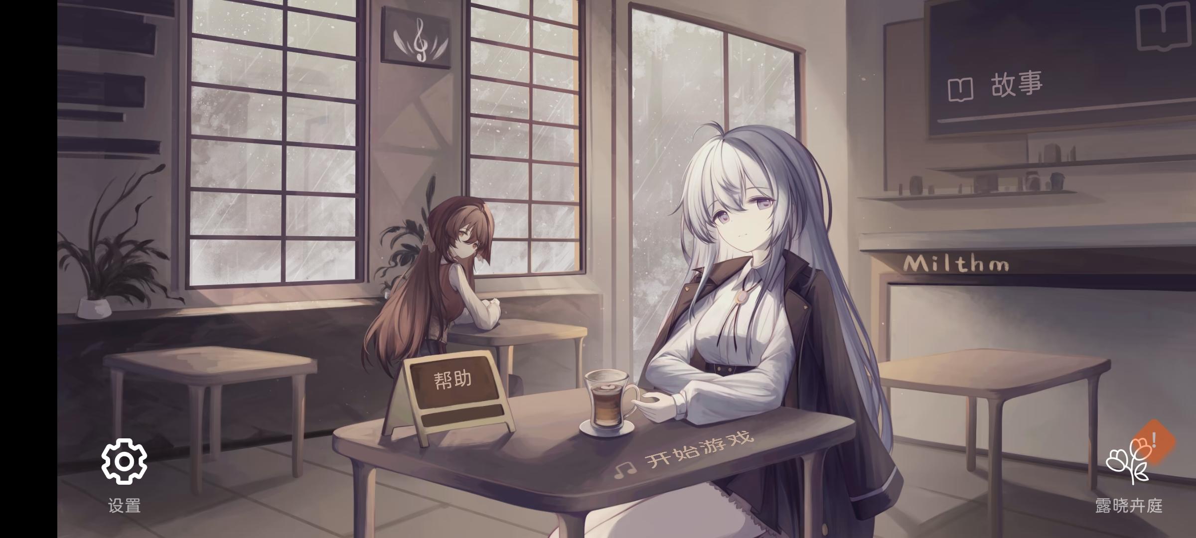 设置可以帮助玩家调节游戏内设定,帮助可以让玩家了解和回顾游戏的特色内容,故事可以让玩家了解世界观,同时也对主线解锁有一定的帮助,点击开始游戏可以进入曲目选择界面。