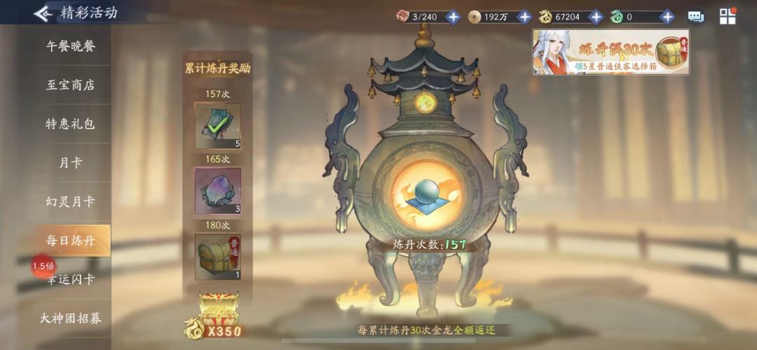 因此,才能在服务器157天,兑换第三个至宝(小Tips:至宝兑换如果差第二天的日常奖励姑苏券,建议有条件的可以等0点完成日常后兑换,因为至宝五点更新,这个时候使用至宝相当于前一天的进度)。