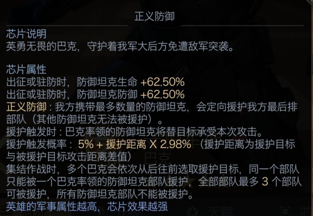 使用混编队伍时,为了更好的保护后排兵种,大家也可以使用卡洛琳主盾+两个巴克埃琳娜副盾的搭配,巴克埃琳娜对比所罗门埃琳娜,对后排特别是战车的保护更加突出,局限性就是只适合混编队伍,纯近战队伍的话不适宜使用巴克!