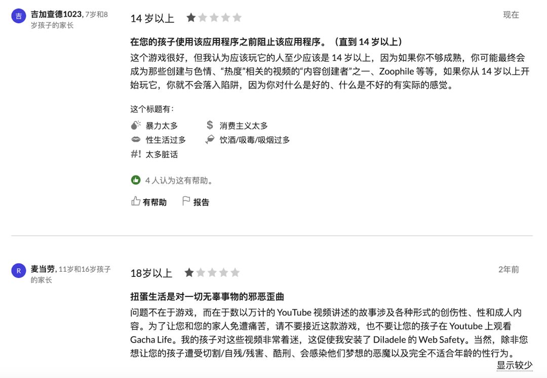 部分内容太过露骨,连很Open的外国人自己都看不下去,在各处呼吁赶紧禁掉《Gacha Life》。尤其这些非常刺激的视频天然就会激发起人的好奇心,小孩子根本无法分辨这些事情的对错,也不知道模仿了会有什么样的后果。
