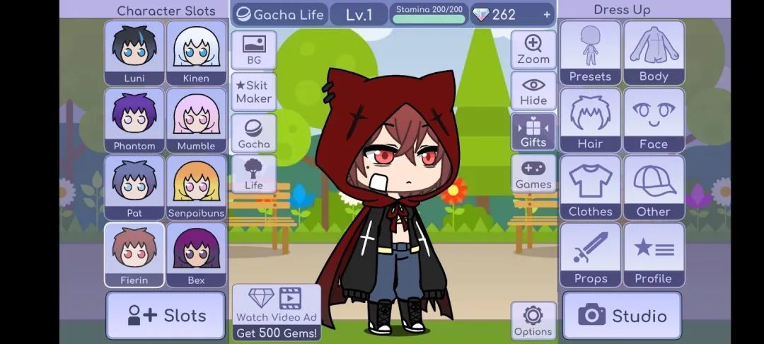 所以现在火的换装游戏里无一例外都有着非常完善的拍照系统,让你能够很自由地摆姿势凹造型,而《Gacha Life》的特别之处在于,它不止可以简单地凹造型,它还能进行故事编排,搞各种小剧场,像是高级过家家。