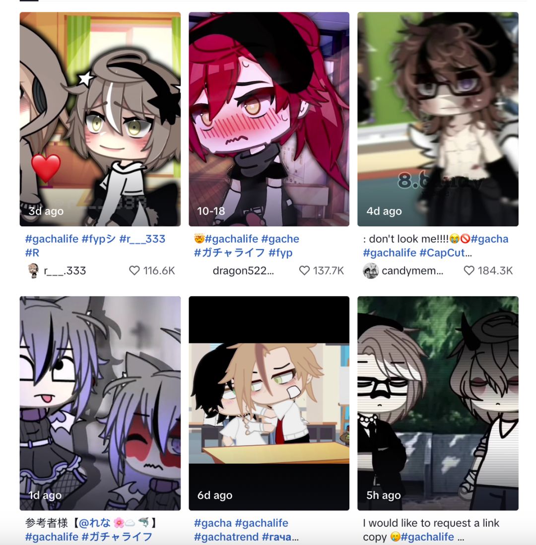 《Gacha Life》这种高级过家家玩法,天然适合二创,或者说这就是为了二创传播而生的玩法。这么火的游戏,肯定有很多高质量作品吧?在好奇心的驱使下,我去各个媒体平台都搜索了一下这款游戏,结果却是让我大为震撼的同时恨不得自戳双目。