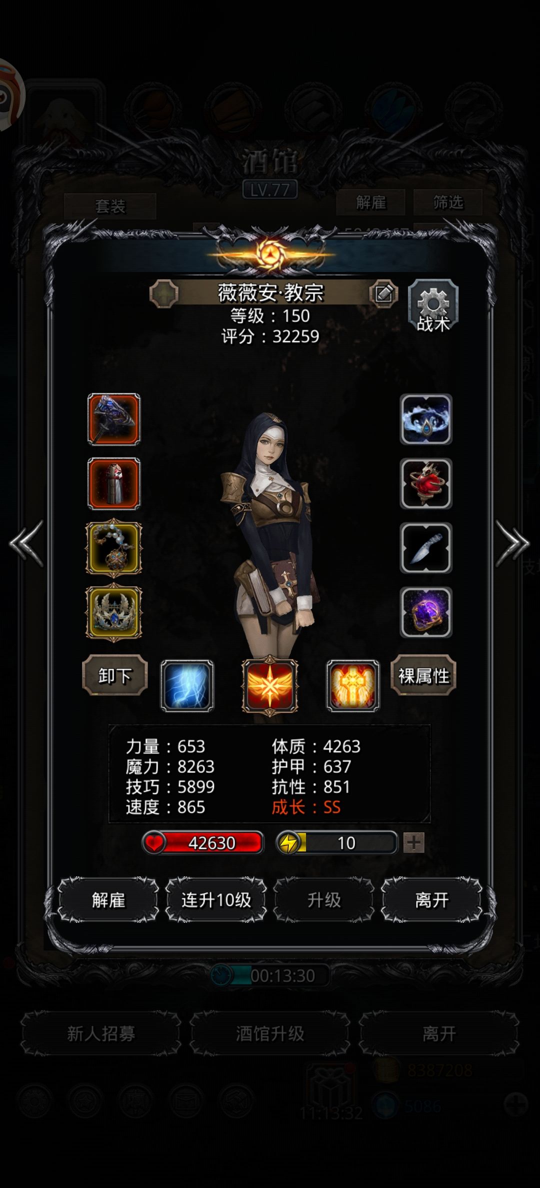 神官:先发,满命,0力速 大于150的异常 手动晕1,4小怪(自动晕最低)