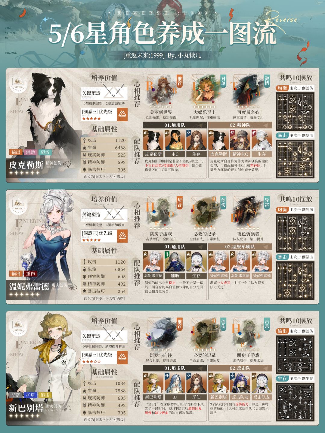 1.配队仅为举例,并非唯一,司辰们根据自己卡池调整即可。