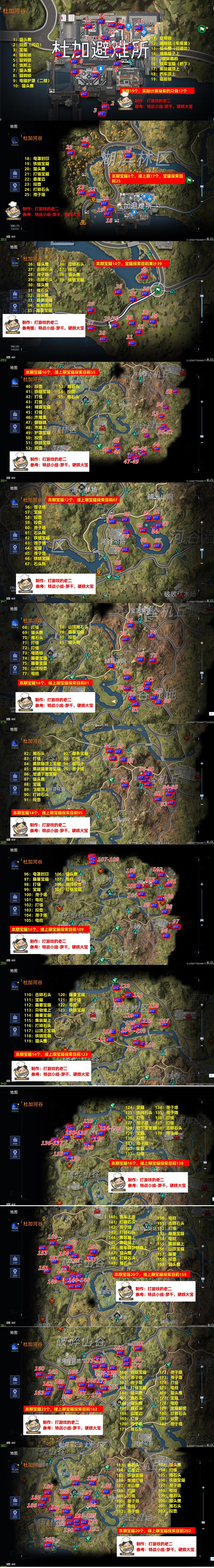 大家好,我是老二,目前杜加河谷的宝箱贴心陪跑已经全部做完!为了方便大家查看,我这边整理了一个汇总贴导航,杜家河谷共计202个宝箱,我划分了13个区域,共计13个领跑视频!!!!