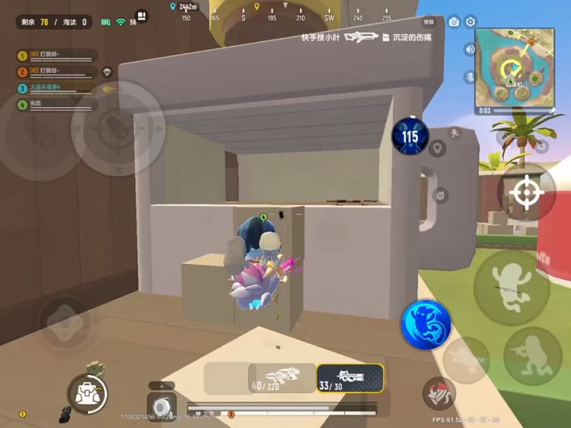 ①搜完装备后上到房顶上,利用高打底优势先清理周围敌人。