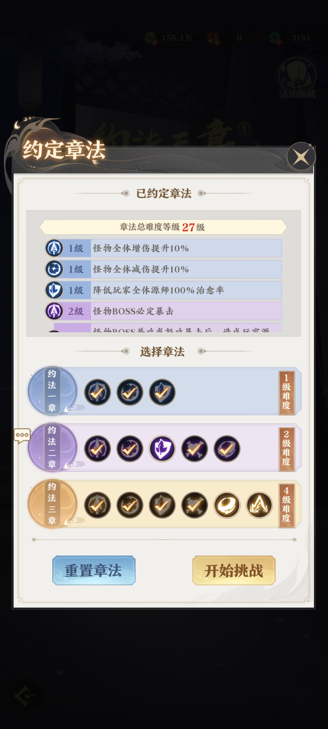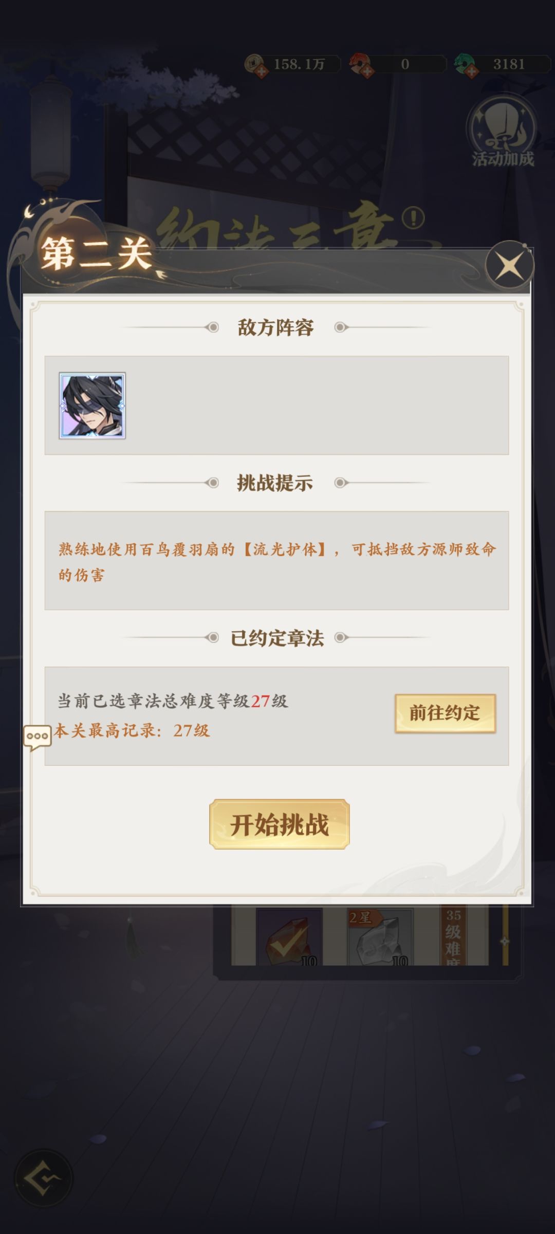 二、第二关选的27级挑战约定章法如下图