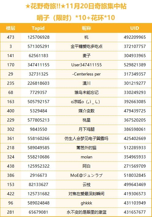 本帖回复期限为11月20日 00:00-23:59,未在规定时间内回复将无法参与本日获奖统计哦!