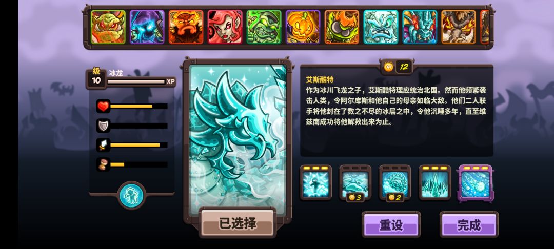 1技能增加AOE攻击范围。2技能每隔12秒冻结地面经过的敌人减速50%。3技能每隔18秒吐出一个120物理伤害的雪球滚动5秒。4技能每隔15秒释放冰刺对敌人造成30%最大血量的真实伤害。5技能释放冻结全场12秒的暴风雪,冷却时间30秒。
