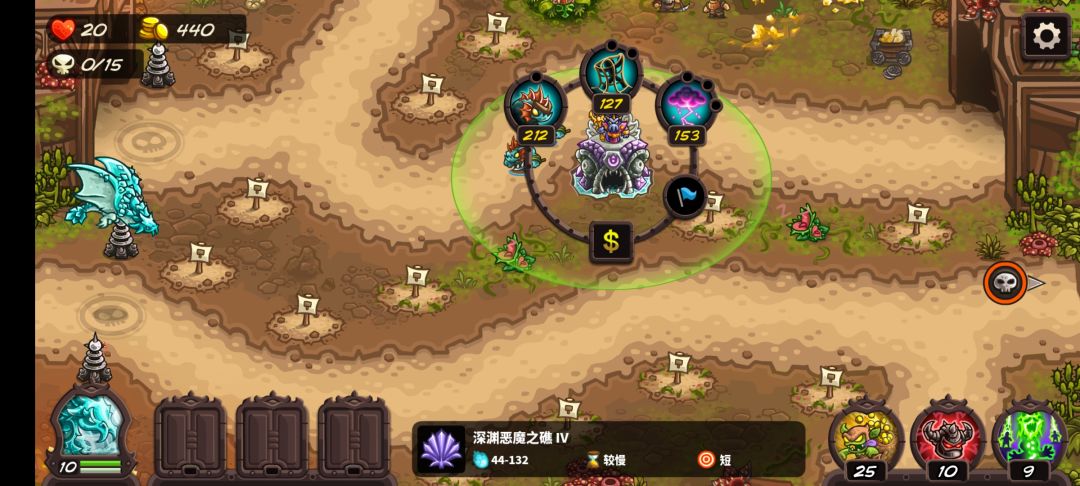 花费70升满530(1技能没啥用,2和3技能可以点。但这塔本身强度也就那样不建议用)