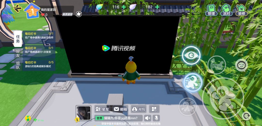 ),又玩了别的模式,都还中规中矩,大厅里的交互做的蛮可爱蛮有意思的,可以玩玩小游戏,祈个愿,听听歌(但是蛋仔可以直接听网易云还不用会员,希望能把QQ音乐搬进去