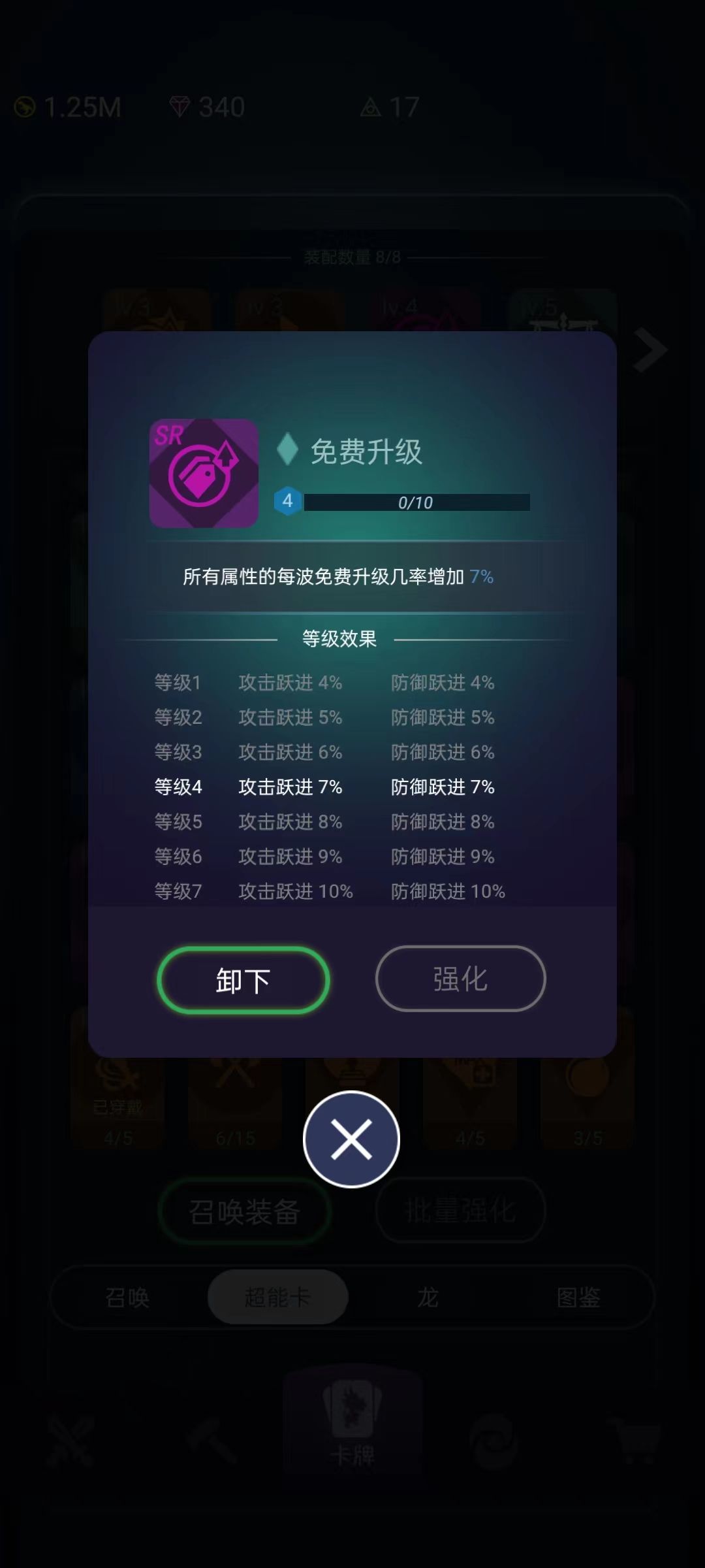 4、还在努力爬楼中,目前9难度。除了个别金币消费巨大的技能,基本点满了。