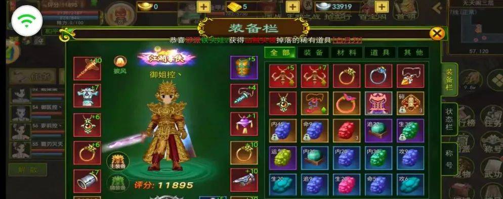 差不多做完这些任务2个小时左右,有些人可以升到33级有些人35级。下一步就是组成队伍去刷怪,现在游戏有些调整组队最多可以有8个人在同一个屏幕,建议直接去打32级的山贼。或者找那些只要两次攻击就能干掉的怪(不论它们是什么级别什么评分只要1-3刀就能解决的收入最高)这样经验收入是最高的。后面也是一样,尽量别去挑战高级别的怪或者和自己同级的怪,为什么这里说一下,首先打高级别的怪优点是有机会得到橙色或者神品的装备,缺点是要用药 而且效率不高 前期银子是非常紧张的 要提升气功点 要升级装备 要购买药都要银子。当然大神随意直接去商城买金币大药。为什么要去打 32的山贼或者36 37的老虎32的山贼血量882前期基本两次就能搞定而且流血少 效率高 能得到金刚石 玲珑石宝箱改造石头合成更高级的石头换了35神品的武器后可以合成在武器上增加攻击力。