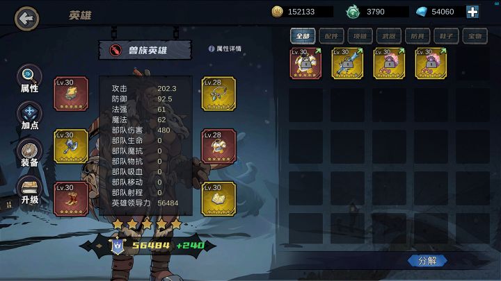 3.装备:主英雄优先部队伤害,后领导力。副英雄领导力(进图攻击力410以上即可)