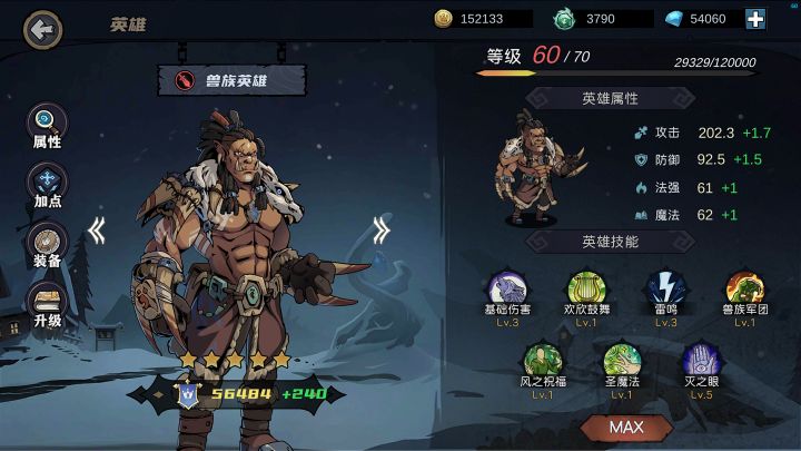 1.英雄:大统帅,兽族英雄55级,大剑豪等级随意1技能满级即可