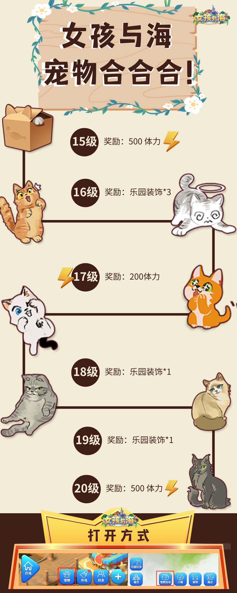 《女孩与海》全新宠物合成玩法已经上线,即刻起海岛猫咖【宠物合成】即可收获一大波猫猫啦!