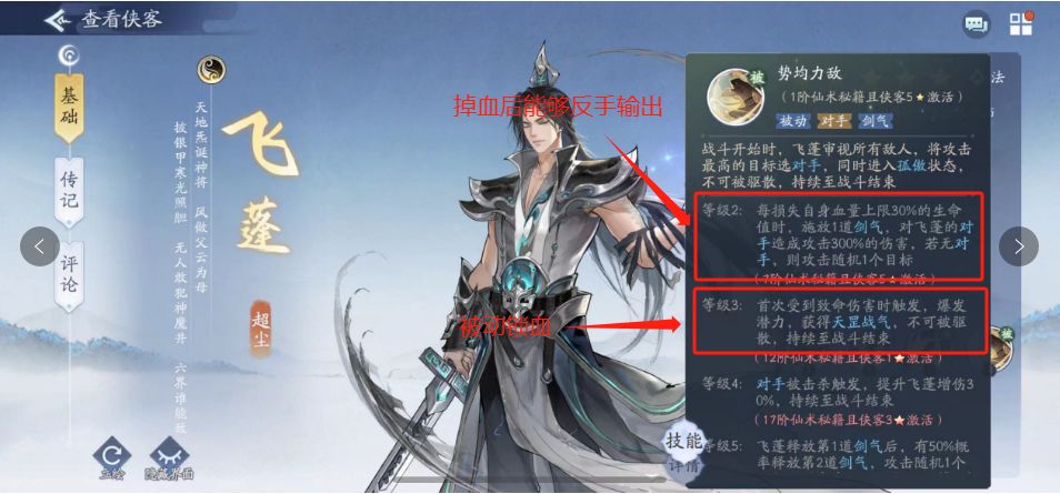 4号位飞蓬——天罡战气锁血,两段血,被动给剑气,怒招无视30%防御的全体输出,战力指数SS