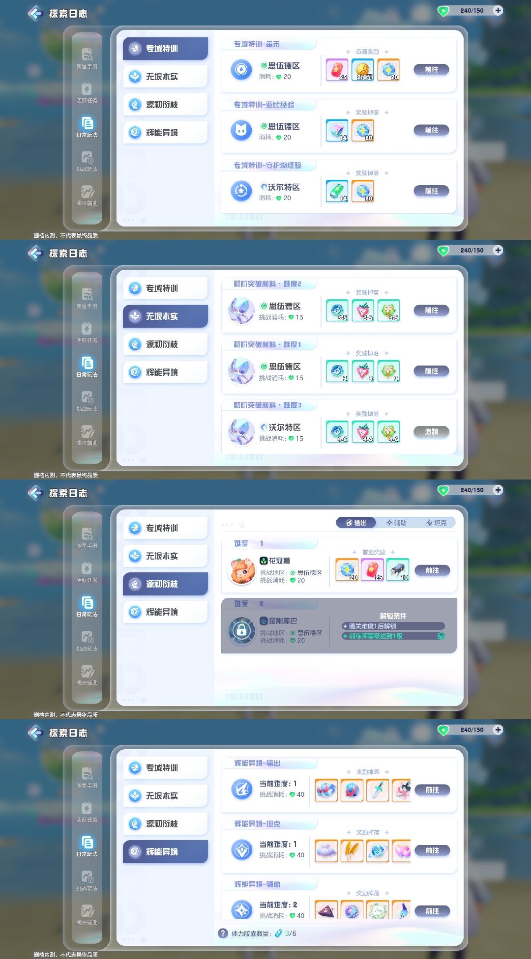 ②突破:突破次数决定亚比等级上限,每下一次突破都需要等级拉满,还有探索者和训练师等级要求,突破次数拉满为6次,其中1、2次(初阶果)3、4次(中阶果)5、6次(高阶果)