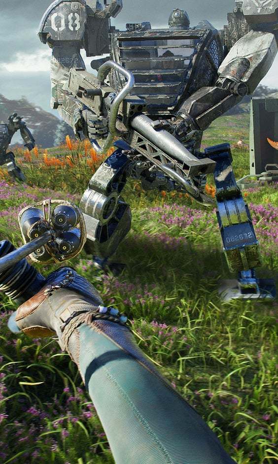 人类武器并不适合你潜行,因为如果你偷偷摸摸,那么一声巨响就会暴露你的身份。所有人类武器的声音都很响亮。但因为声音大,所以非常有趣。它们对机械、AMP战服和所有东西都非常有力。因此,当你开始行动时,它们会非常非常有效。”