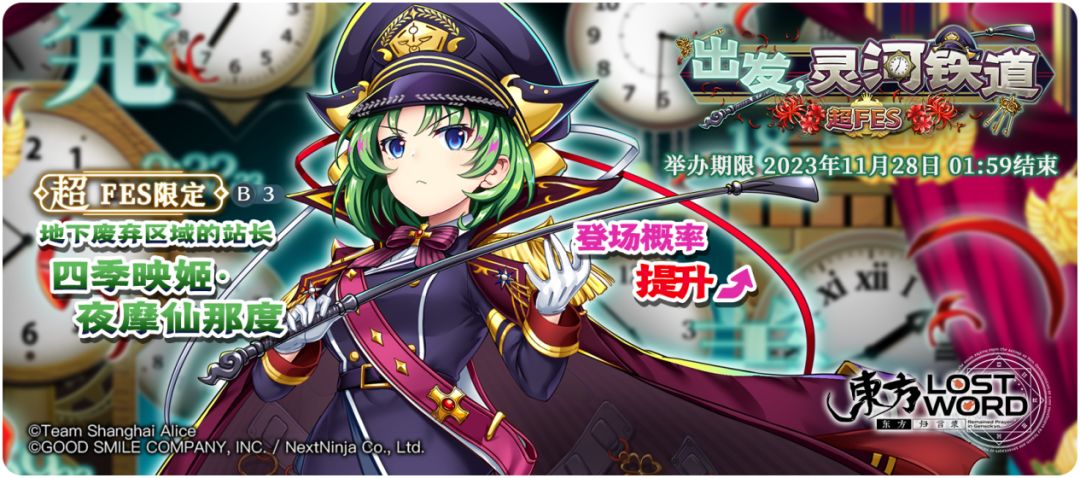 ✨角色概率UP:「地下废弃区域的站长 四季映姬·夜摩仙那度」登场概率提升的超FES限定祈愿!