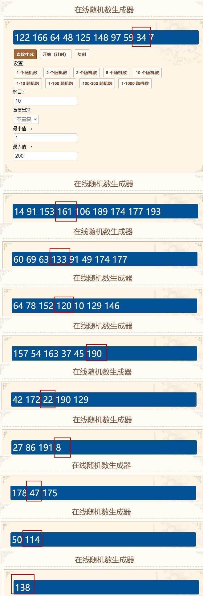 在1-200之间生成10个随机数,不含伴灵战力排行榜分享内容的楼层不在抽奖范围内,抽奖过程如下: