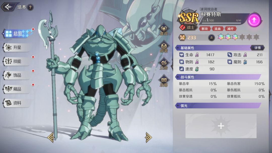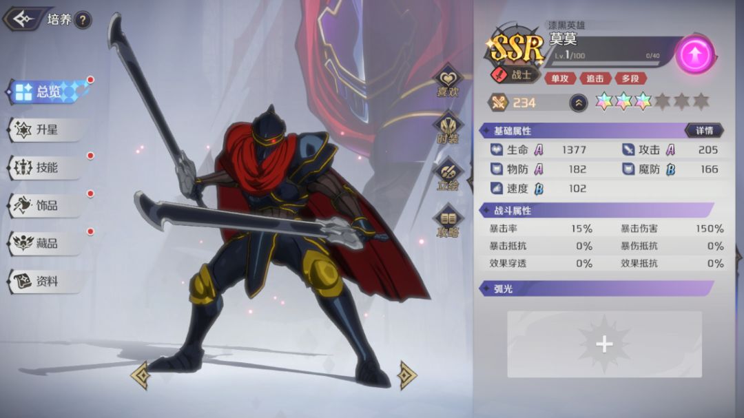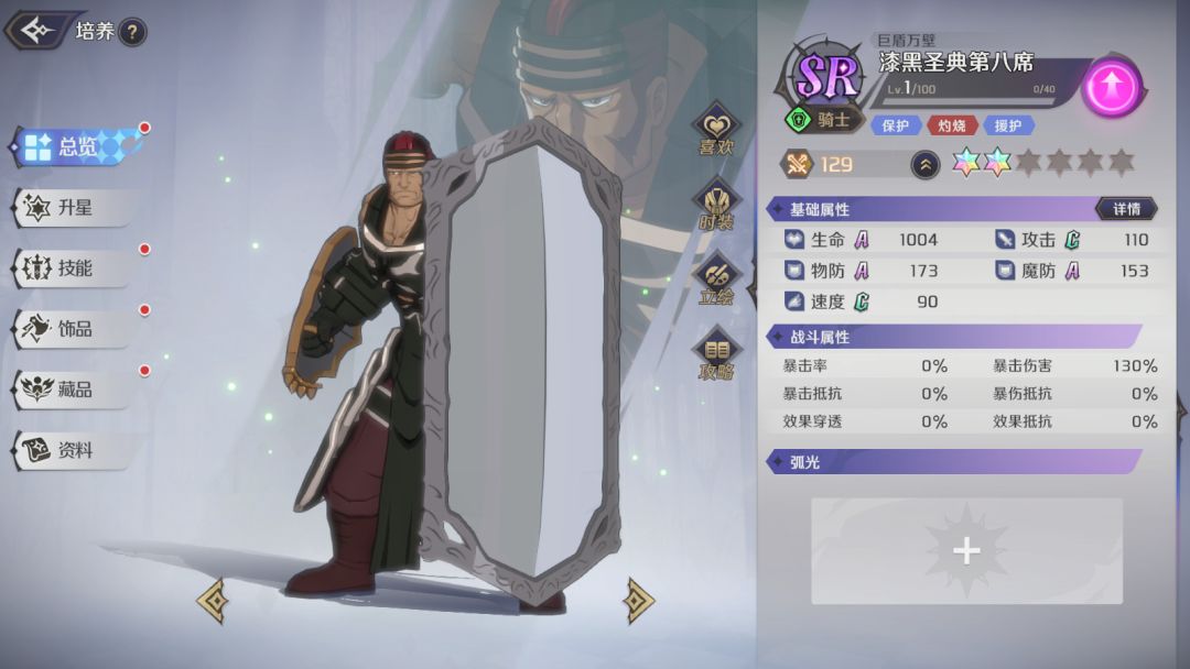 英雄评价:提升队伍防御,为全体队友抵挡攻击;为候选人物,没有好的骑士位情况下可以先用,有好的骑士位再进行替换;