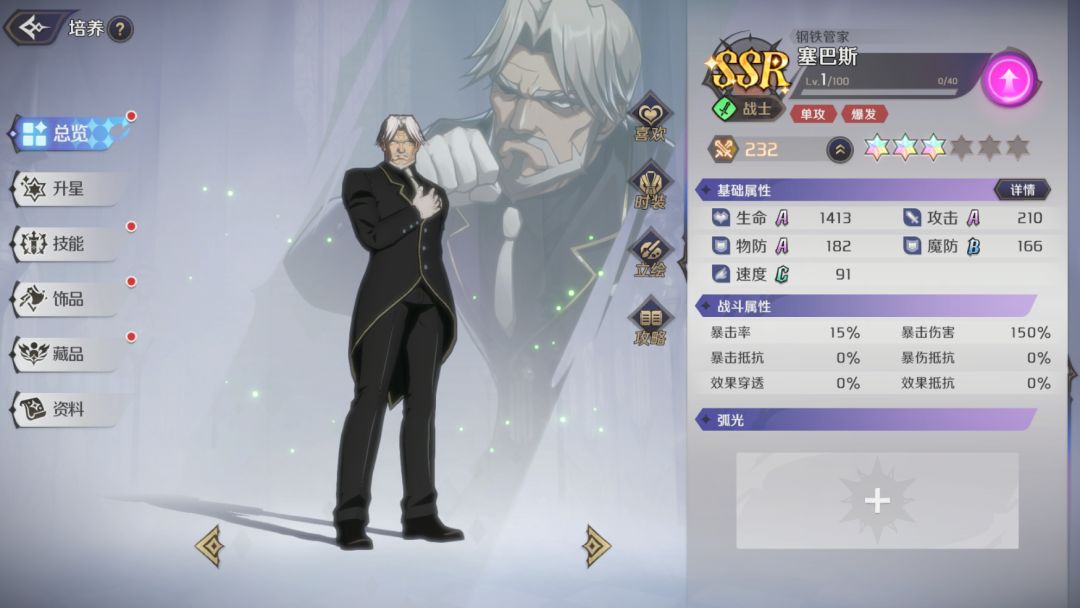 - 女仆团的核心为由莉,因为由莉的被动,在攻击时会邀请队里攻击最高的女仆团进行协战,如果赛巴斯在场时,则会优先邀请赛巴斯。赛巴斯作为主C,通过其他两位女仆团的攻击,可以进行正气的叠加。同时赛巴斯本身攻击是可以叠加buff,获得无视防御和提升攻击,配合开局送的由莉,可以触发被动“钢铁管家”。