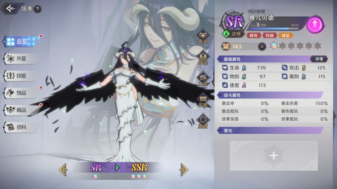英雄评价:初始为SR游侠,4星时品质提升为SSR。伤害高、爆发高,雅儿贝德与至尊的技能拥有连携效果,可以打出额外伤害;给敌方单位附加大量的debuff效果,增益状态也是比较可观的;
