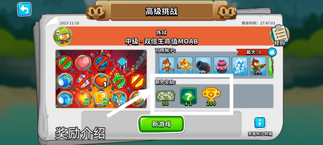 打气球的时候,尽量猴子少放点多升级。猴子放密集点,中间两边放冰冻猴。也可以按照自己的想法来做,猴子等级越高伤害越高。(普通猴子再多也比不了)