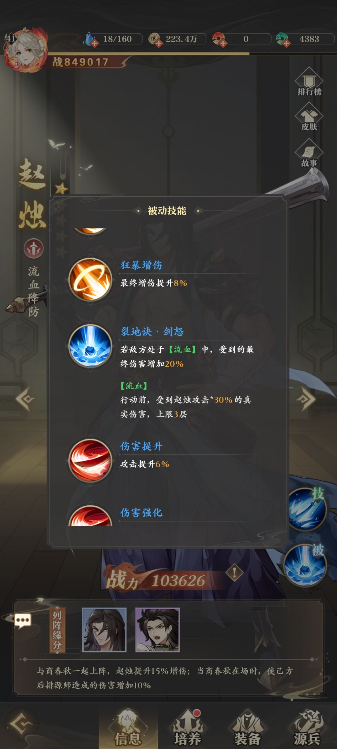 基本就这几个,能补一点伤害就行,我自己大概打了1/8左右的伤害,剩下的交给人机打就行,五打的时候触发了一次彩鳞的双重大招,六的话第二轮李纯钧和秦莲那俩要多暴击几次,多打几次暴击多了就过了。战力比我高的用这个配置应该是能稳过的,战力低一些的就不建议尝试了。